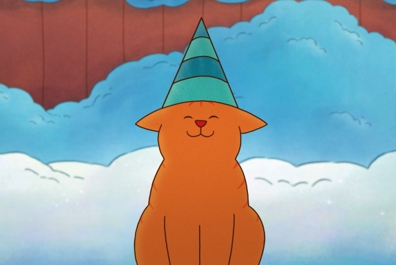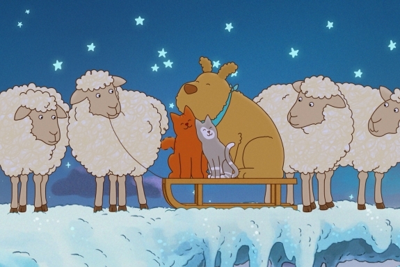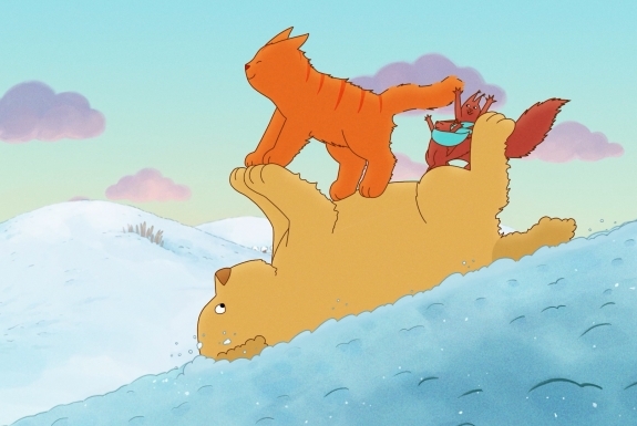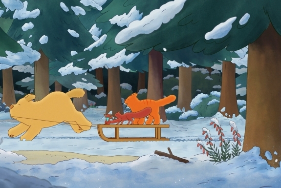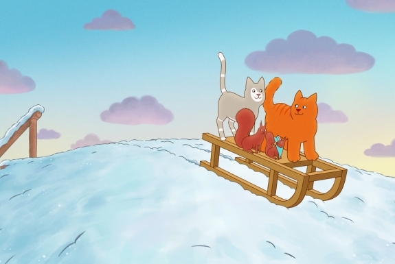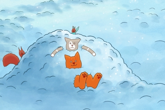 Följ med Tommy Tass och hans vänner när de en vinterdag upptäcker något nytt: snö! Dessutom har det också flyttat in en ny granne - en stor, högljudd hund som heter Voff. Brr! Det tycker katterna inte alls om!