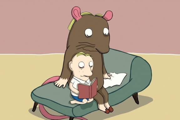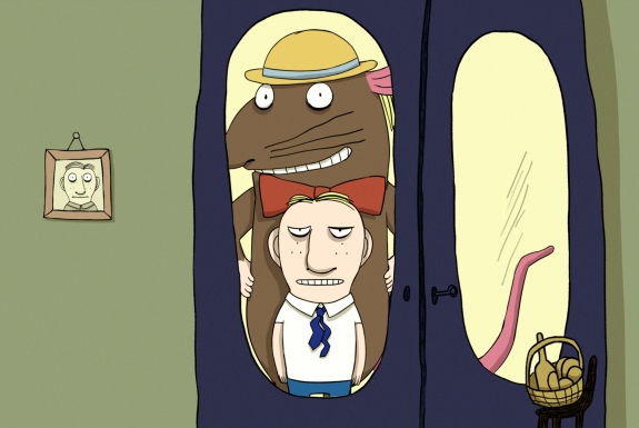Vem ska en nattvaken fladdermus leka med när alla andra sover? Vad händer när en stor råtta plötsligt tar över ens hem? Hur går det när den förträfflige herr Glad får en ny granne - som alltid är sur som en citron?